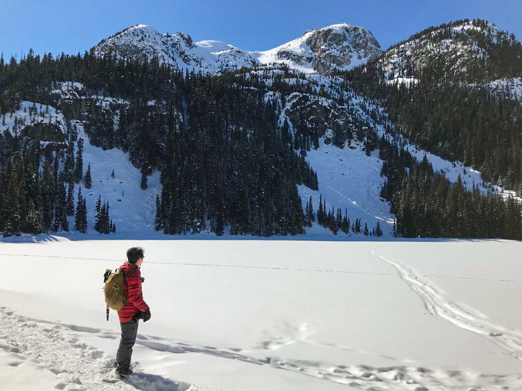 This is one of the most popular trails that you have to visit. It’s a bit far way from the Vancouver core but it’s worth the drive. It takes about 2.5 to 3 hours drive to get to the trail head and you’ll have to fight for parking spot. There are 2 parking lots but normally both of them are full if you are heading there during weekends. Pro tip – Get there early, like 9/10AM in weekends! Weekdays are usually way less busy. The trail is about 9KM back and forth. You’ll be passing by 3 lakes along the way, but if you have the time and legs you can hike beyond the 3rd lake and up the hill (even to the glacier at the peak) and look back to the valley. I went there in March this time, so it’s basically still full of snow. I literally took a shortcut by walking across the lakes. I’ve also been there during the summer, which the scenery was also stunning.